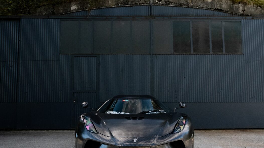 This striking image showcases the car’s sleek black finish, offering a captivating contrast with its polished chrome accents and aggressive stance. The sharp lines and bold design of the Koenigsegg Regera KNC make it a true masterpiece in the realm of Sports Cars, perfectly depicted in 4K resolution.