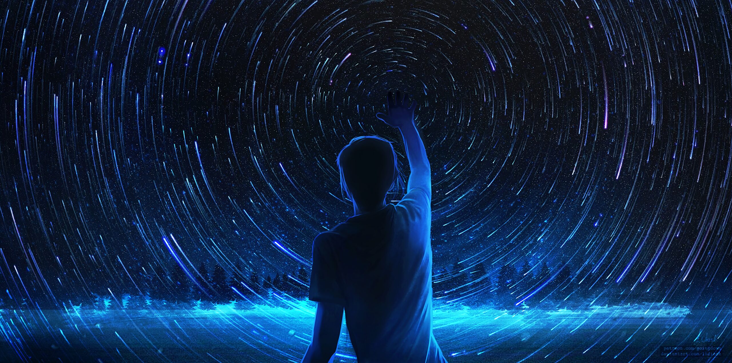 Blue Silhouette Starry Sky 4K Wallpaper – A Brilliance of Night for Desktop Wallpaper