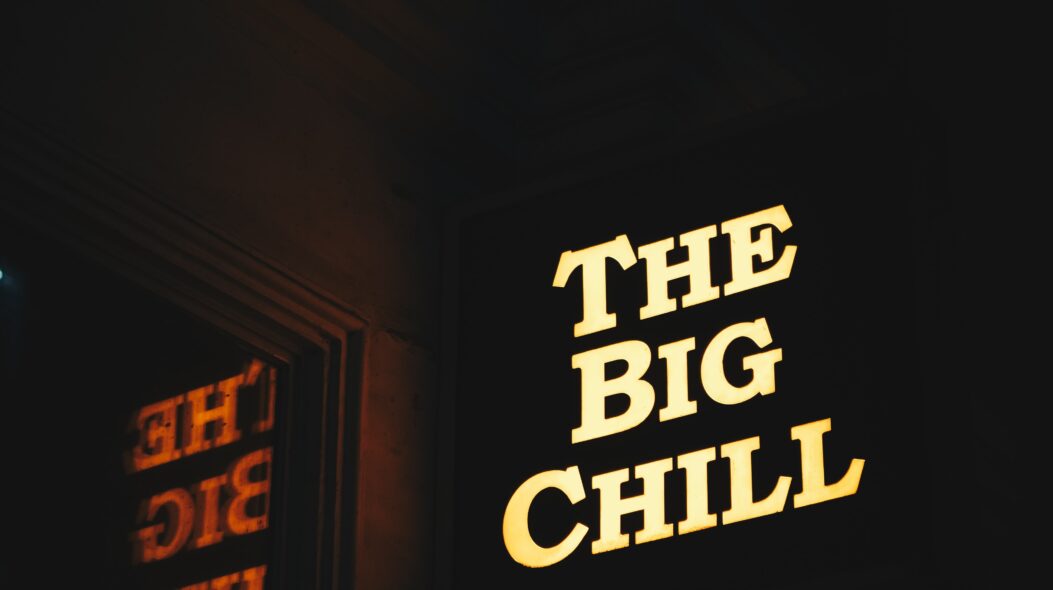 Dark Relaxation 4K Wallpaper – Glowing Inscription for Desktop Wallpaper