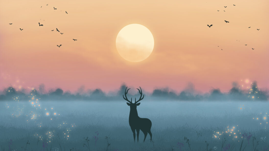 Art Deer Silhouette Night Moon 4K Wallpaper – Mystical Serenity for Desktop Wallpaper