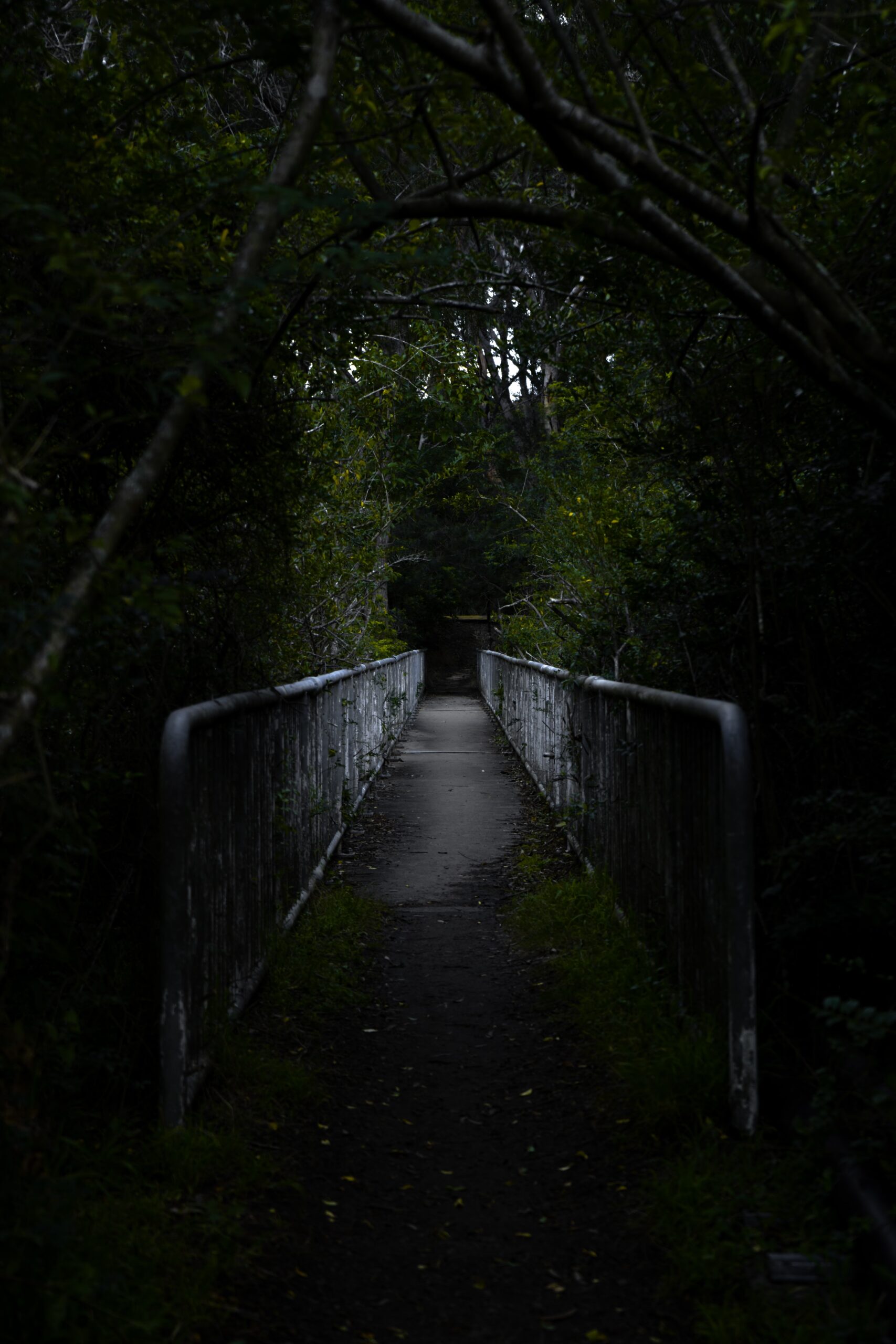 Enchanting Dark Forest Phone Wallpaper – Mysterious Road & Bridge