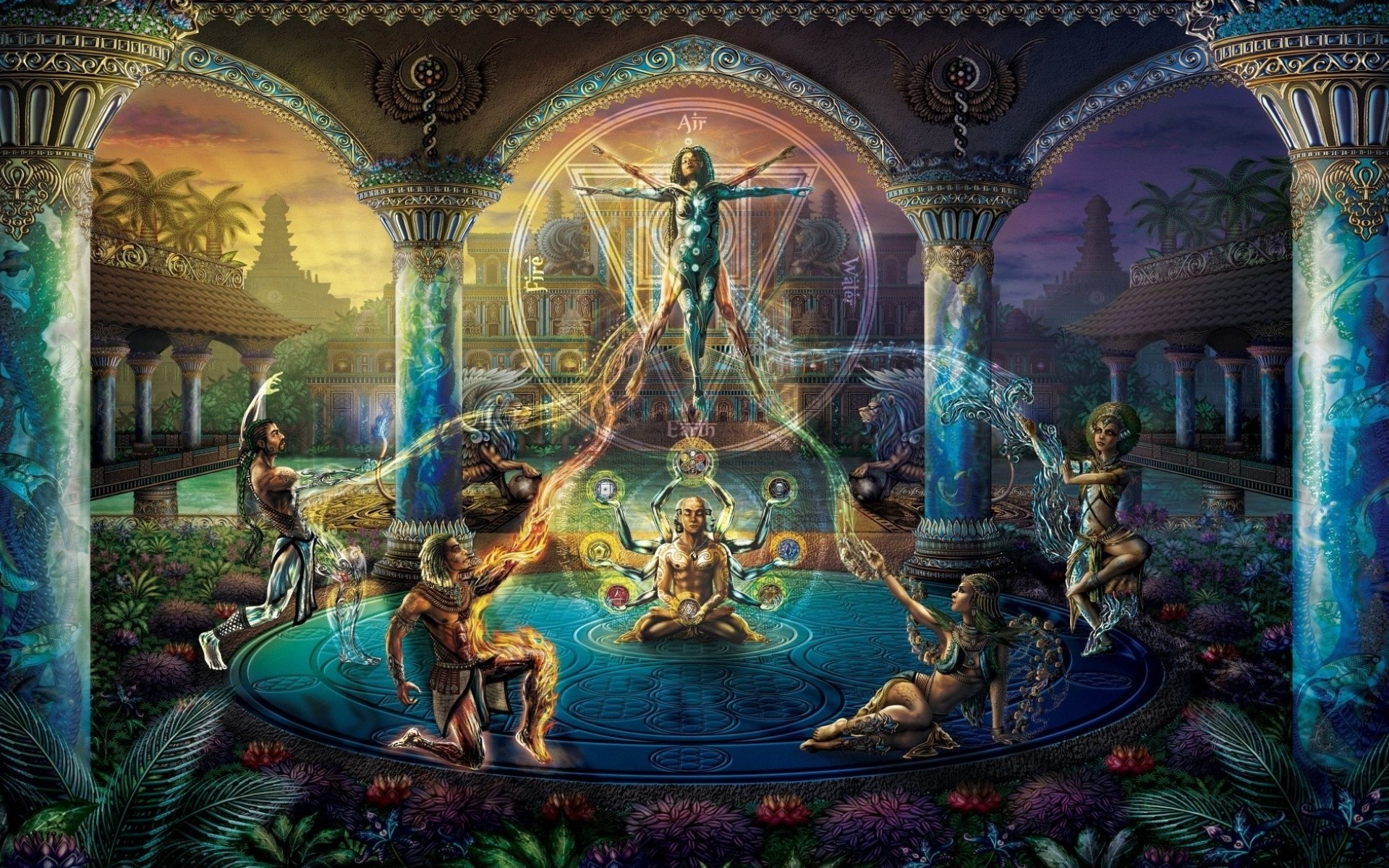 Elemental Magic 4K Wallpaper – Fantasy Temple Vibes for Phone Wallpaper