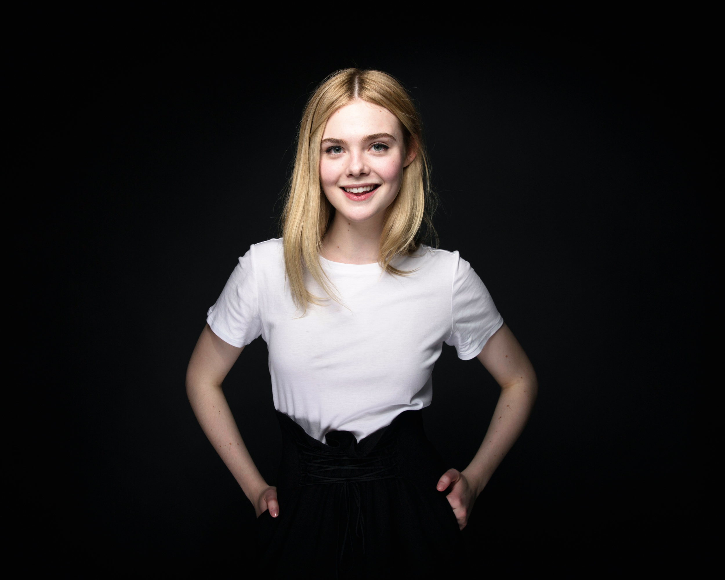 Dive into the captivating world of Elle Fanning with this exquisite Desktop Wallpaper. This American actress, widely celebrated for her captivating performances, shines with her striking blonde hair and mesmerizing green eyes. This large 4K image beautifully captures her radiant smile, highlighting the essence of a beloved celebrity.