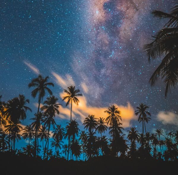 Escape to paradise with this stunning stars & palms phone wallpaper! Featuring a captivating starry sky, the Milky Way, and serene nature vibes. Download now for Free!
