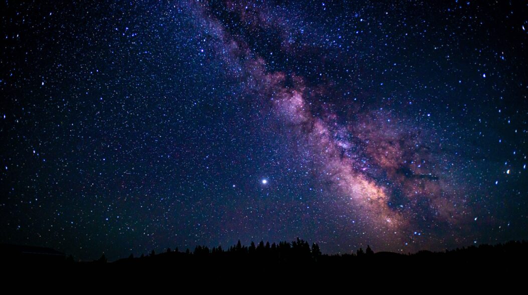 Transform your screen into a mesmerizing gateway to the cosmos with our breathtaking Desktop Wallpaper. Immerse yourself in the stunning beauty of stars scattered across a limitless universe, casting a dazzling glow over the serene, night sky. Feel the calm embrace of the starry night as constellations twinkle above silhouetted trees, creating a tranquil yet awe-inspiring visual journey?